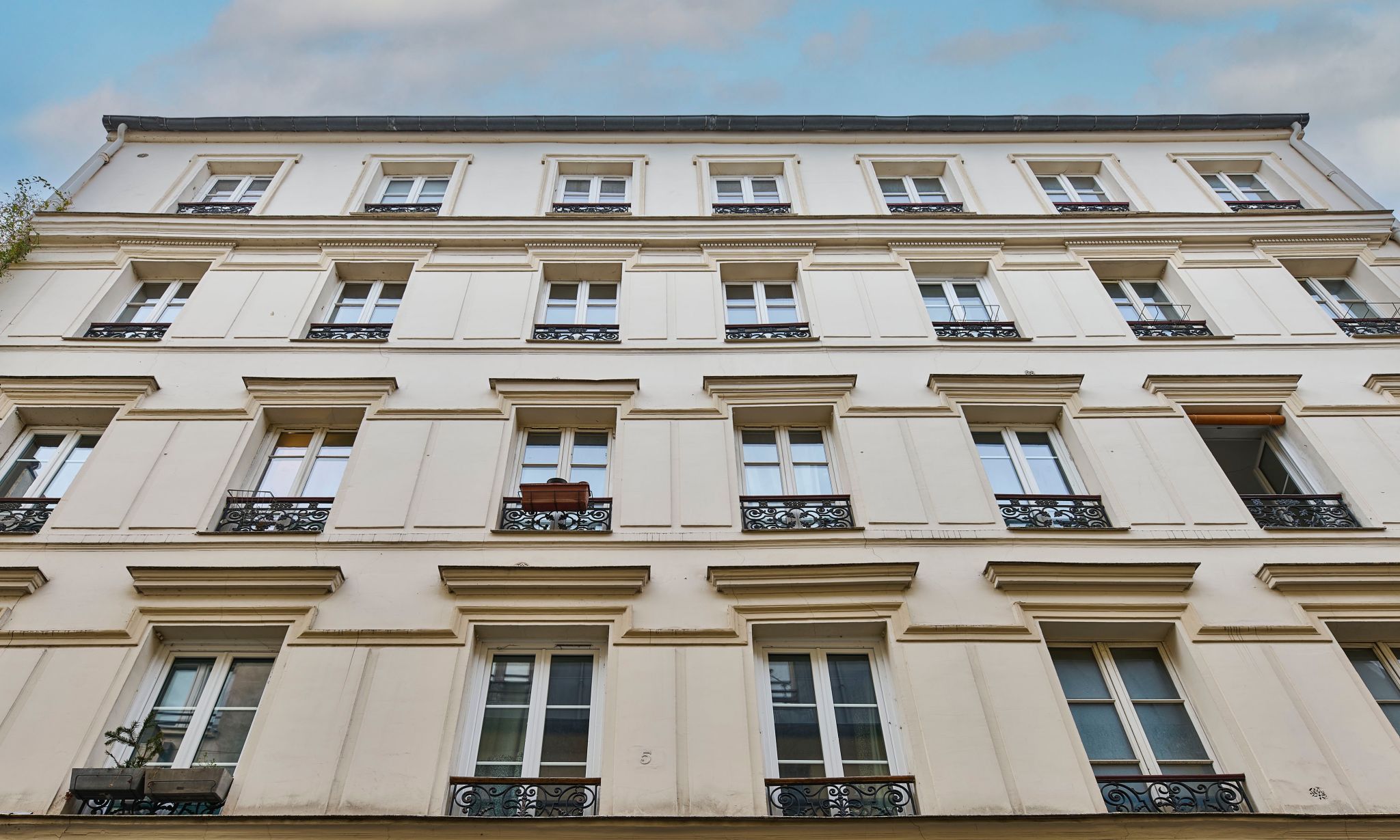 Cet ensemble se compose d’un bâtiment résidentiel sur rue de quelque 500 mètres carrés, avec une coque retail en pied d’immeuble – les appartements sont vacants à hauteur de 80 %. Un second immeuble, sur cour cette fois, accueille le showroom femme de VP Collections