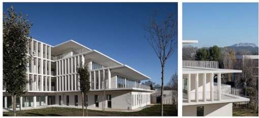 Ensemble de bureaux dans le quartier les Milles à Aix-en-Provence. Il se trouve à proximité immédiate des grands axes autorouDers (A51 et A8), de l’aéroport Marseille-Provence, et de la gare TGV d’Aix-en-Provence.