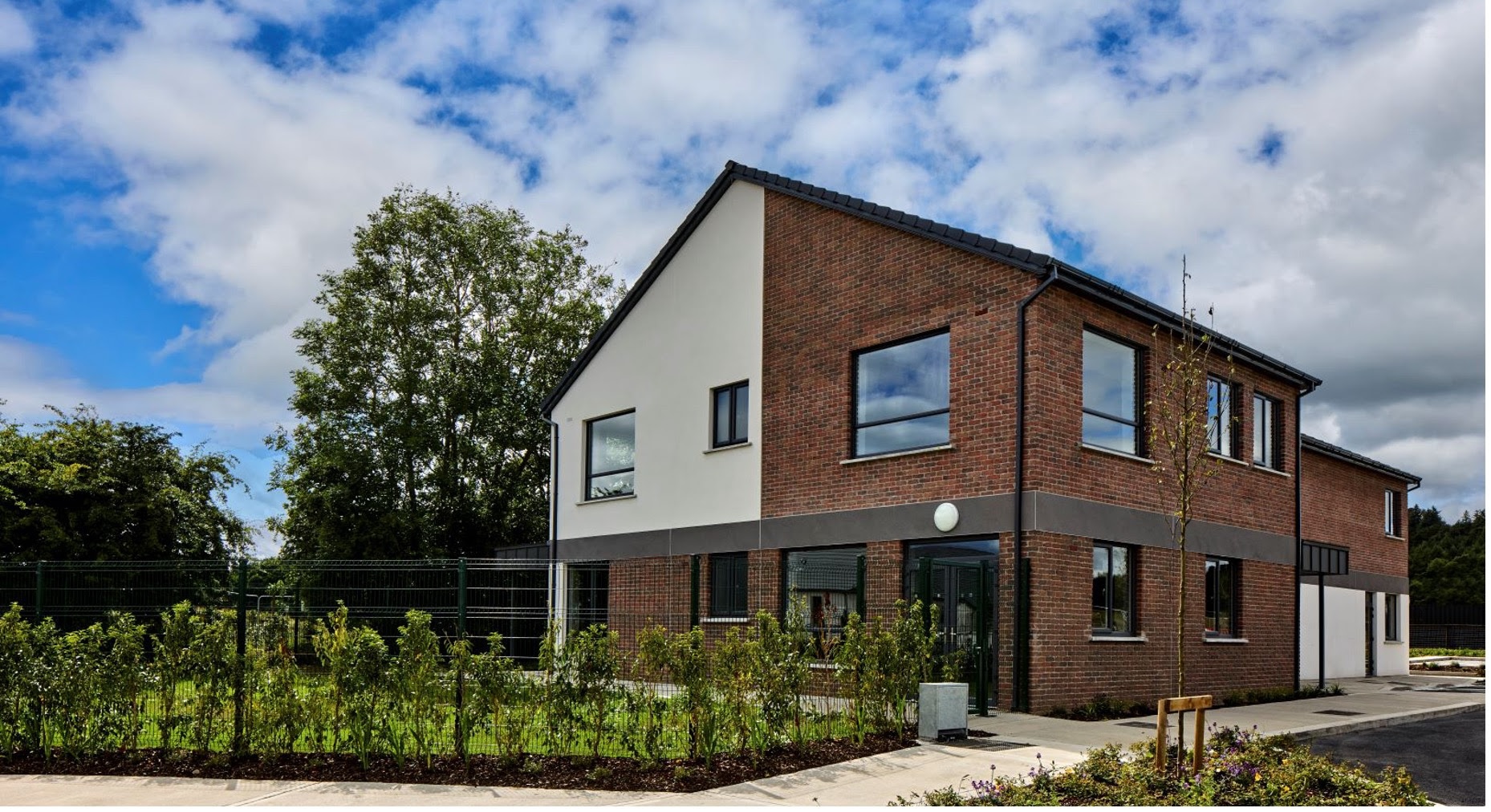 Une crèche d'environ 540 m², située à Blessington. La structure comprend : un bâtiment moderne sur deux étages, un espace extérieur dédié, 20 places de stationnement, dont un parking à vélos et deux bornes de recharge électrique.