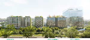 Ensemble mixte de quatre immeubles de 53 000 m² comprenant 40 000 m² de bureaux (le New R de 25 000 m² et le X work de 15 000 m² ) et 13 000 m² de logements (2 immeubles résidentiels de 6 500 m²).