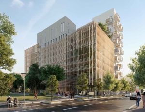 Immeuble avec façade en bois, terrasses végétalisées et jardins accessibles au cœur d’Euroméditerrannée