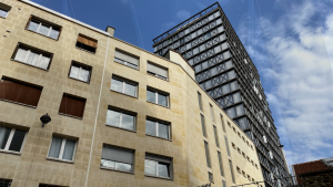 Immeuble de bureaux de 10 niveaux avec 10 emplacements de parking extérieurs.