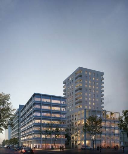 Immeubles Plug'In et Pylote situés dans la zone Lyon Confluence, au cœur de l'ilot Sollys, développé par Bouygues Immobilier et Linkcity (33 000 m2). Ils disposent de plateaux fonctionnels, d'un roof top, de balcons filants et d'une cour arborée.