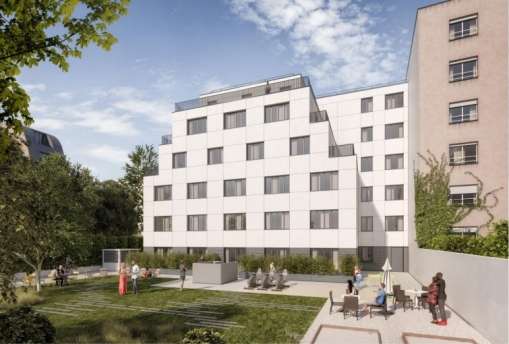 Une résidence étudiante neuve de 144 appartements répartis sur cinq étages, avec des places de parking sur deux niveaux, située à Suresnes