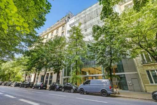 Situé dans le 16ème arrondissement de Paris, cet immeuble propose une surface locative de plus de 6 000 m² de bureaux répartis sur plusieurs niveaux. On y trouve : deux halls d’accès à l’immeuble, un restaurant, un espace de réception de 223 m² composé d’un auditorium de 90 places assises, d’une salle de réunion et d’un foyer, une terrasse panoramique sur Paris et une salle de réception de 162 m² au 9ème étage de l’immeuble. Il dispose également d’attentes permettant l’installation d’un espace cuisine et 59 places de stationnement VL en sous-sol, 5 emplacements moto et d’un local vélo de 65 places agrémenté de vestiaires et de douches.