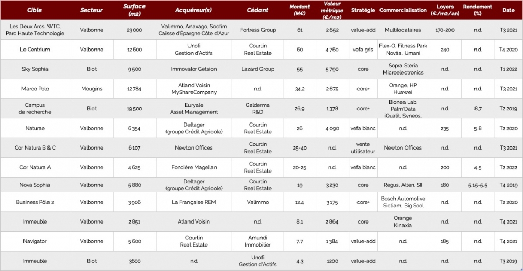 Avec l’arbitrage de ce bâtiment A, le spécialiste de la reprise de produits value-add acte sa sortie définitive de Cor Natura. À l’automne Courtin Real Estate s'était déjà délesté en vefa des immeubles B et C (6 107 mètres carrés) auprès de Newton Offices – la marque de coworking soutenue par Tivoli Capital et KKR – contre 20 à 30 M€ selon les données du secteur. D’après nos sources, le produit de la vente de l’ensemble du projet Cor Natura (10 732 mètres carrés) se chiffre entre 45 et 50 M€. Courtin Real Estate demeure un grand habitué de ce type d’opération à Sophia Antipolis… En 2020, la foncière de Christophe Courtin a signé la plus grande transaction dans le bureau pour ce territoire avec la cession off market de Centrium (12 600 mètres carrés) pour environ 70 M€, auprès de la SCPI Notapierre gérée par Unofi-Gestion d’Actifs. Pour mémoire, Christophe Courtin a déjà revendu pour plus 30 000 mètres carrés de bureaux neufs à Sophia Antipolis – dont Naturae, Nova Sophia, Cora Natura et Centrium. Selon nos informations, Christophe Courtin va arbitrer, d’ici fin 2022, Navigator, un actif de 5 700 mètres carrés racheté à Amundi en 2021 et en cours de réhabilitation. « Notre foncière réalise 60 % des projets de ce type sur le territoire sophipolitain », abonde le business angel. L'investisseur value-add est d'ailleurs en exclusivité pour redévelopper un ancien site tertiaire de 15 000 mètres carrés dans ce morceau de France. D’ici 2026-2027, Christophe Courtin se donne pour objectif de doubler son pipeline de projets de bureaux – soit 100 000 mètres carrés. « Nous prendrons des positions dans les grandes métropoles françaises », confesse-t-il.