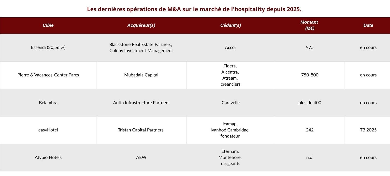 En investissant dans Essendi, Blackstone, dirigé par James Seppala sur le continent, confirme son appétit pour le secteur des loisirs en Europe, encouragé par une demande de voyages résiliente et une offre limitée de nouveaux actifs prime dans des emplacements attractifs. Le portefeuille hôtelier européen du fonds de private equity américain comprend Hotel Investment Partners (HIP), acquis en 2017 et devenue une notable plateforme de villégiature en Europe du Sud, par le biais d'acquisitions et d'investissements en capital. Blackstone détient aussi Village Hotels au Royaume-Uni, acquis en 2024, identifié pour son fort potentiel d’amélioration opérationnelle. Le fonds est présent de longue date dans l'hôtellerie : il a notamment détenu pendant près de onze ans une participation dans Hilton, « qui a généré plus de 14 Md$ de gains pour les investisseurs et renforcé sa conviction en faveur de l’investissement à long terme dans des plateformes », rapporte une source proche.