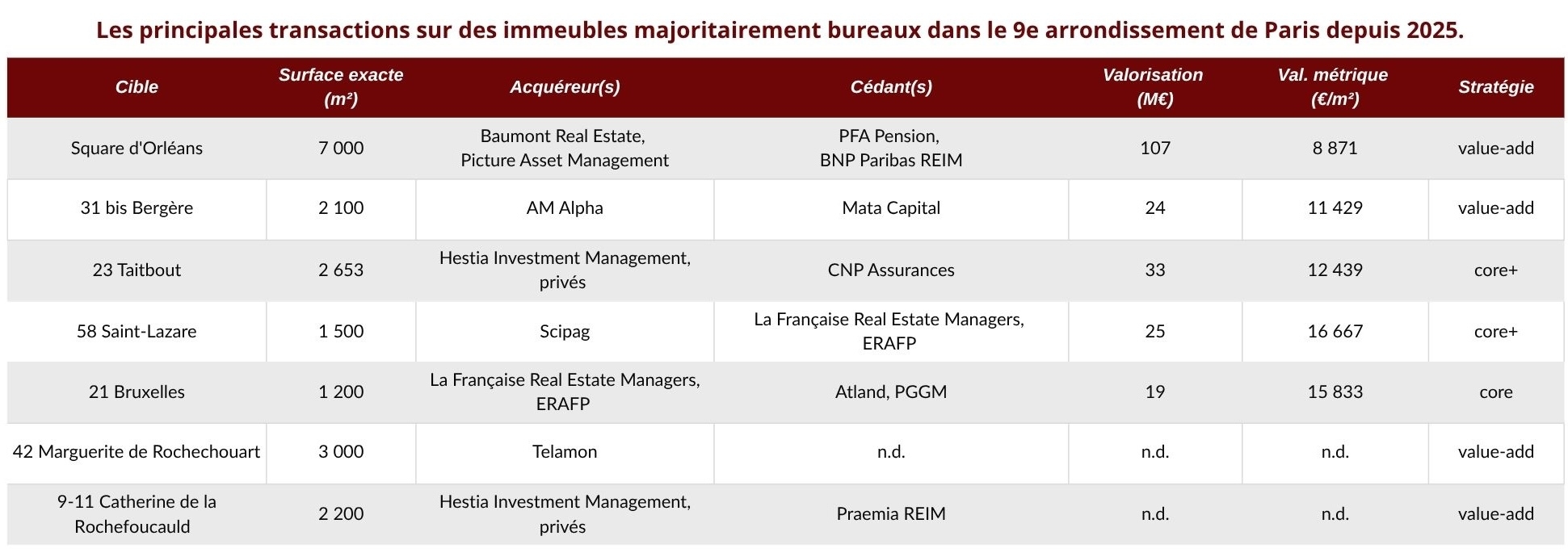 Cet immeuble recense près de 2 102 mètres carrés de bureaux et 82 mètres carrés de sous-sol, sans oublier 22 places de parking souterraines. « Des plateaux de bureaux efficaces de 250 à 300 mètres carrés environ permettent des aménagements flexibles, adaptés aussi bien à un seul locataire qu'à plusieurs, abonde AM Alpha. L'immeuble bénéficie d'une abondante lumière naturelle et dispose d'un rooftop offrant une vue imprenable sur le Sacré-Cœur. » Là encore, le family office munichois ne précise pas combien il va débloquer en capex pour rénover/repositionner le 31 bis Bergère. L’immeuble est déjà présent sur le marché locatif à un niveau de loyer facial de 850 €/m2/an. « Paris demeure l'un des marchés de bureaux les plus attractifs et compétitifs d'Europe, poursuit Étienne Marcot, directeur France d’AM Alpha. Notre présence locale nous permet d'identifier des opportunités hors marché intéressantes et de réaliser des transactions avec efficacité. Cette acquisition illustre une fois de plus notre capacité à garantir des investissements attractifs pour nos partenaires et à libérer le potentiel de l'actif grâce à une gestion active et des stratégies de repositionnement ciblées. »