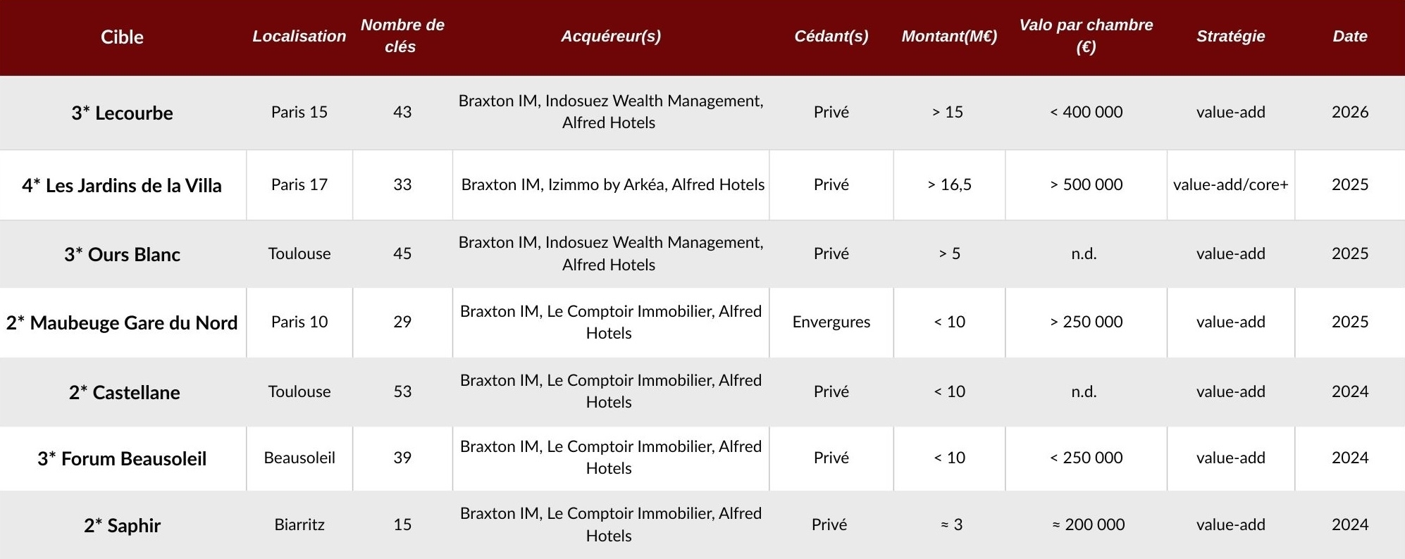 Les principales transactions de plus de 40 M€ sur le marché hôtelier en région depuis janvier 2025